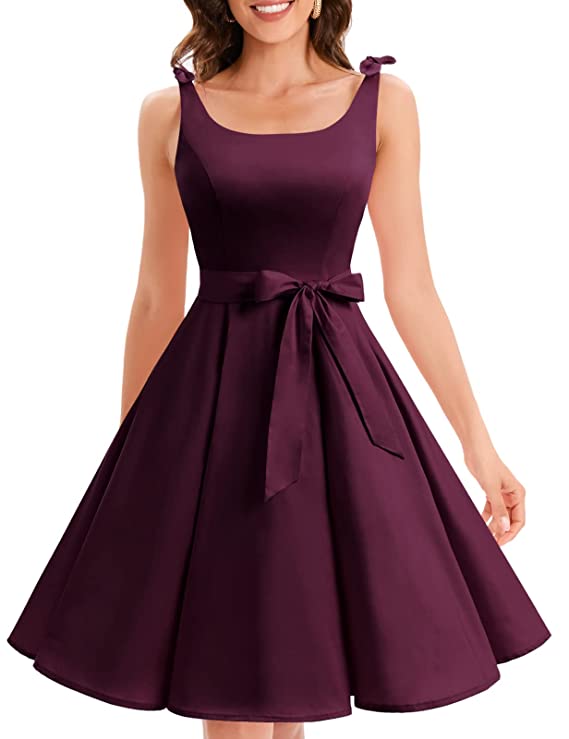 Features: A-Line, Sleeveless, Concealed Zipper Closure, With a Detachable Waistband, Fit and Flare.