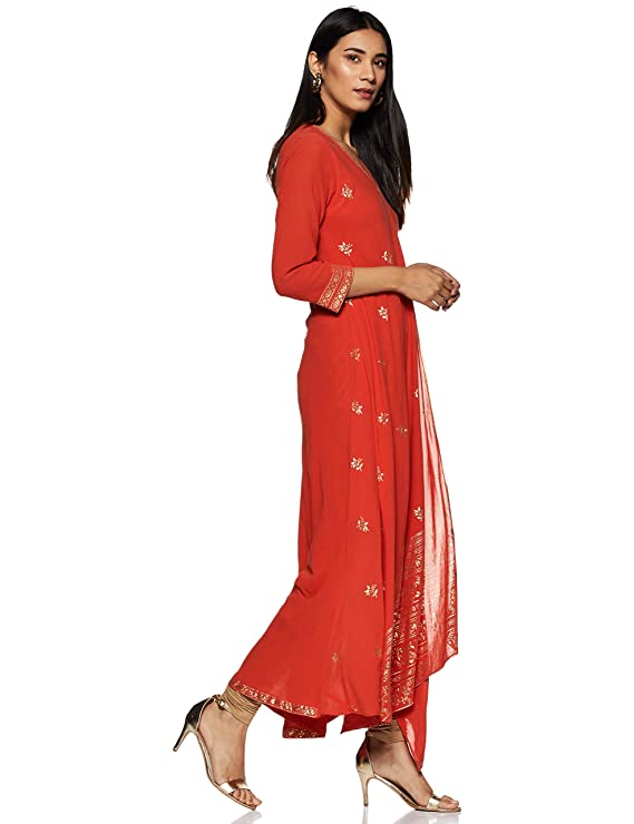 Hand wash; a very stylish dress cum kurta; it comes featuring v-neck and three-fourth sleeves; it has a very stylish front featuring cut and stylish fall in the centre which is further making an asymmetric hemline