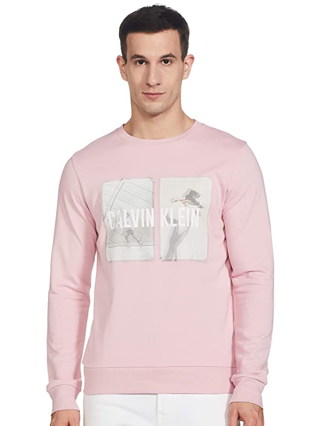 Calvin Klein Men Pink Solid Sweatshirt. Crafted With Cotton. Material Composition Is 100% Cotton.