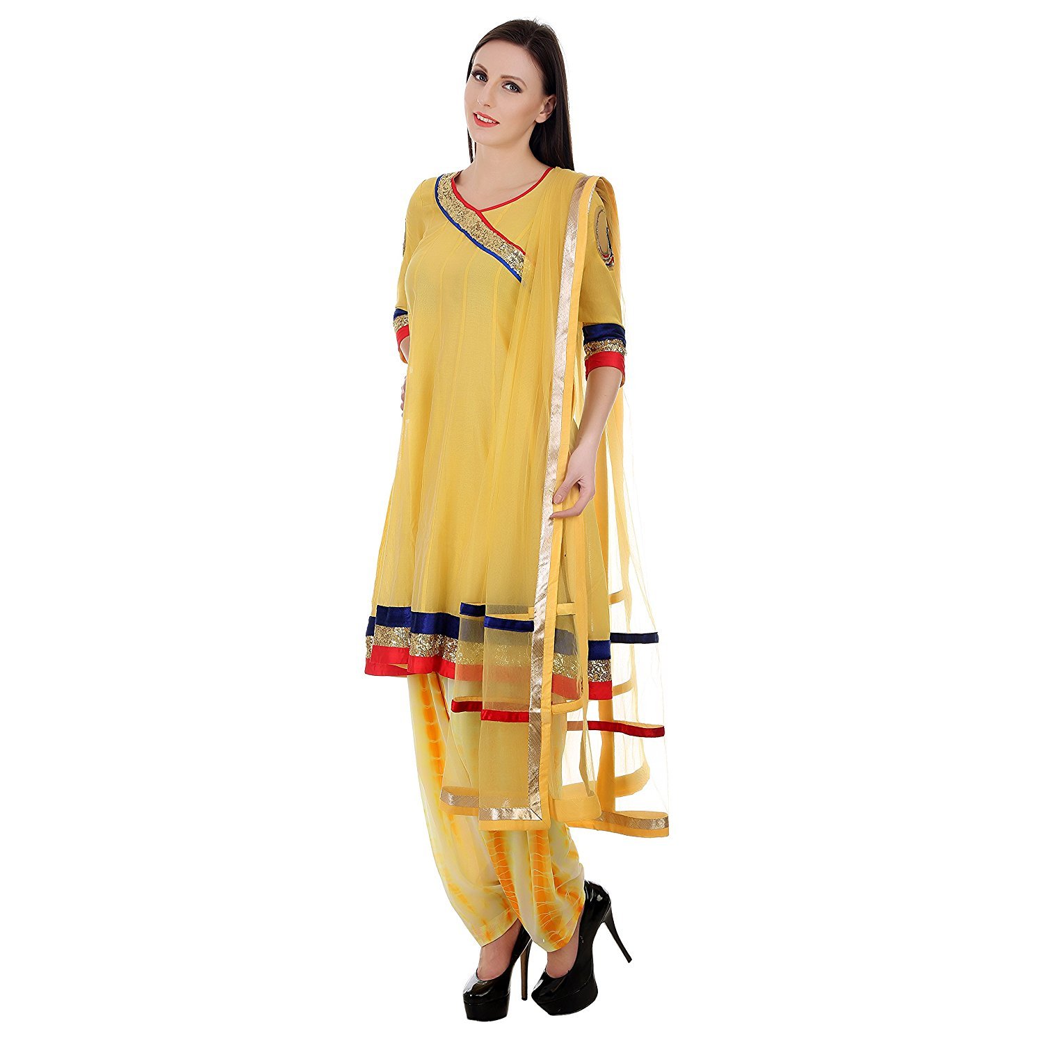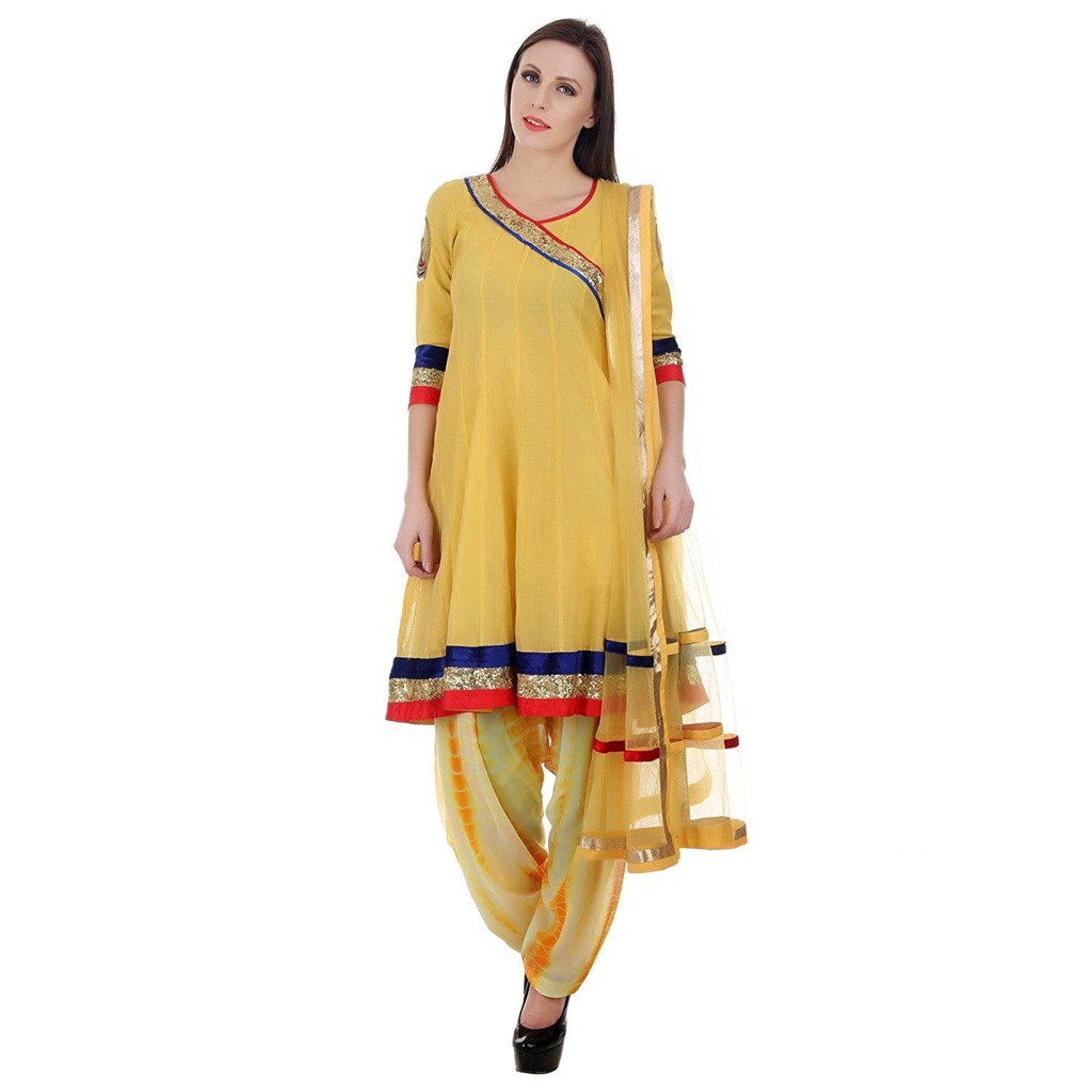 Devaleena Creations Yellow Chanderi Short Anarkali-Peacock embroidery on the sleeves for Ladies