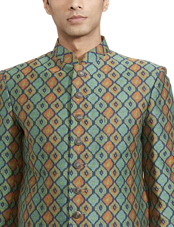Ethnix Men’s Jaquard Indowestern Jacket (RTIB00133-N5_Medium Green_100