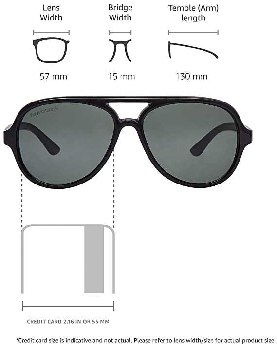 Lens Width: 57mm, Bridge Width: 15 mm, Temple length: 130mm