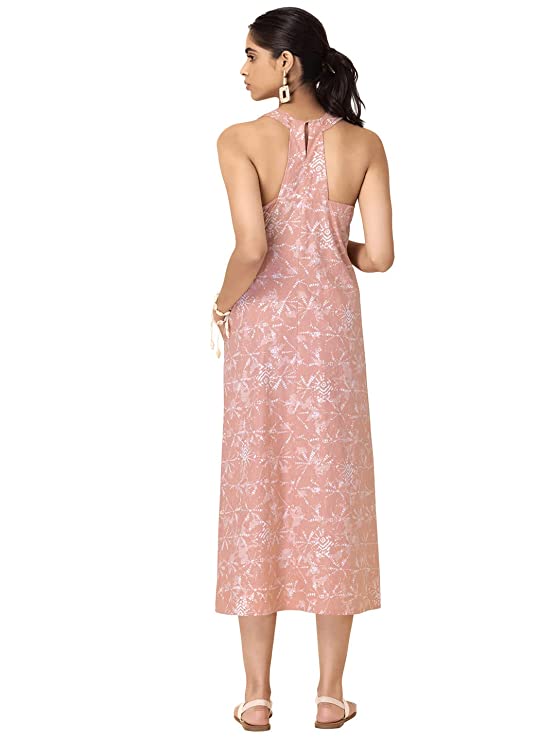Escape the heat of summer with this soft peach halter dress. Tailored in cotton, it features a fetching tie-dye print with ruched detailing in the front. Style Tip: Pair it with white strappy flats and shell earrings.