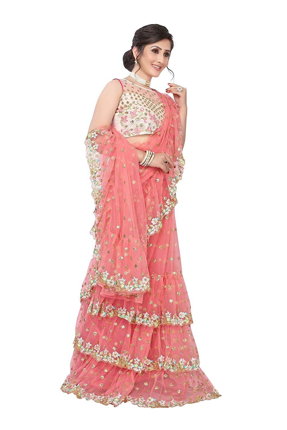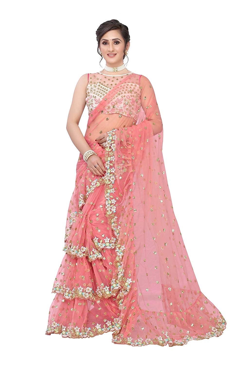 Saree Fabric: Net *** Saree Inner: Dull Santoon (2mtr) *** Saree Length: 5.5 M *** Blouse Type: Un-Stitched *** Blouse Fabric: Net *** Blouse Length: 0.90 M *** Blouse Work: Embroidery Work *** Work: Embroidery sequence Work *****Quality Guarantee