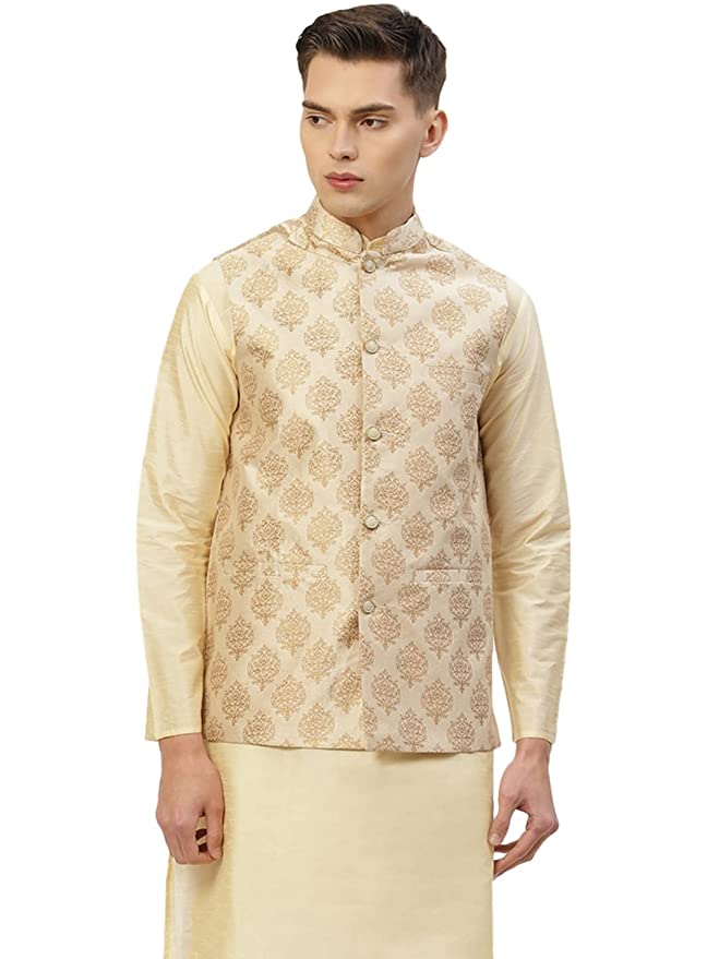 Jompers Men’s Woven Design Nehru Jacket.