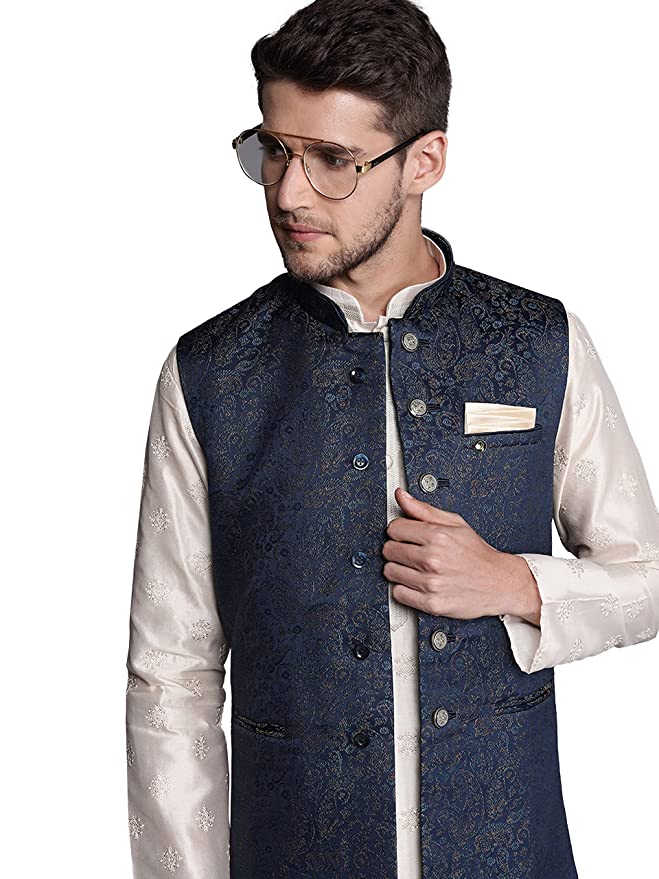 Manyavar Mens Jacket, Nehru Jacket for Men, Ethnic Jacket for Festival, Wedding, Party, Sleevless Jacket Brocade