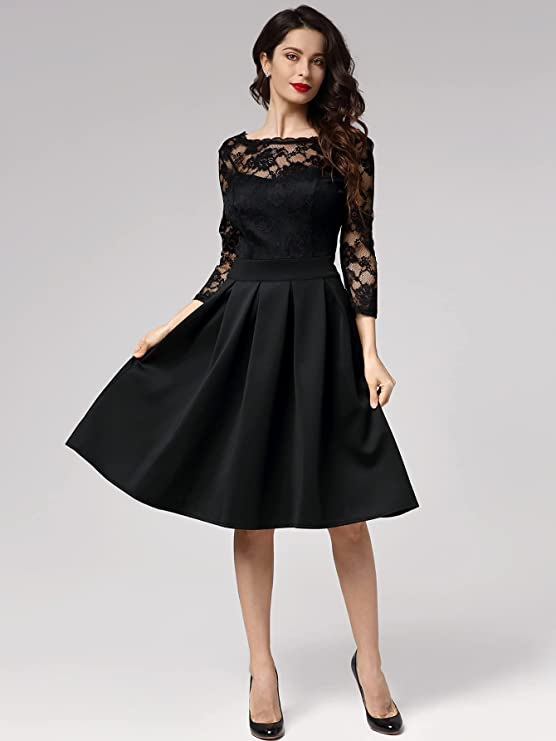 Miusol Women’s Vintage Floral Lace 2/3 Sleeve Bridesmaid Party Dress