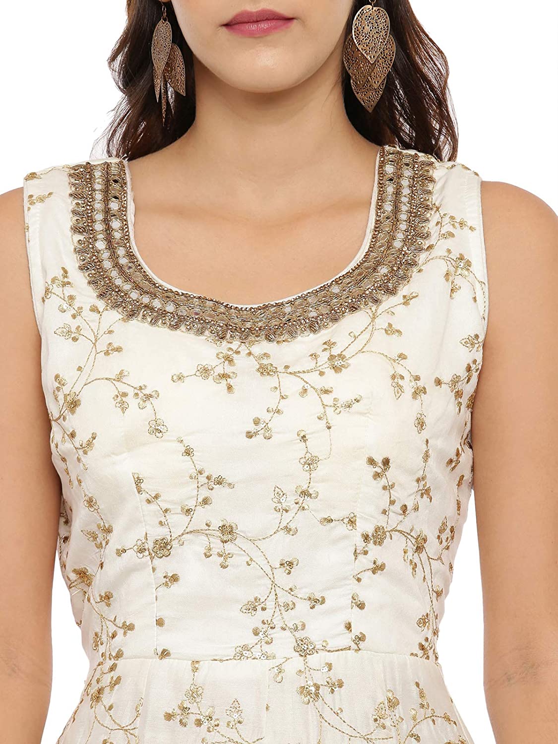NEERU’S CREAM Embroidered A-Line salwarsuitset