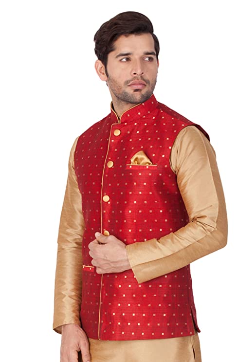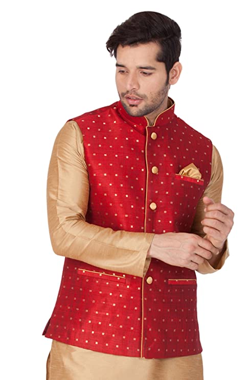 Vastramay brings to you these jacket for mens stylish stitched meticulously to fit all body type. This fabric has been designed keeping in mind the latest trends in a casual fashion or occassional fashion. Engineering garments which fit all body types and style is our aim. These nehru jacket for mens latest designs like modi jackets for men are of multi utility, it can be used as a bandi or for a formal event, or a business meeting as a waist coat for men. If paired with a Kurta Pajama For Men then these are perfect light weight easy to wear alternative to a servani or indo western for men. Our recommendation next time don’t go for a sherwani for men stylish latest design, try these! To complete the look adorn a mojari or jutti slippers for men stylish, you may also try an authentic Kohlapuri chappal for men, the fashionistas and millennial folks may experiment with a brogues or oxfords juta for men stylish. Suitable for: Party, Weddings, Regular Wear, Celebrations, Occasions, Festivals, Lohri, Pongal, Makar Sakranti, Baisakhi, Holi, Eid, Raksha Bandhan, Dussehra, Diwali, Navratri, Pooja, Christmas, Onam, Ganesh Chaturthi, Janmasthmi and Gifts for Mens.